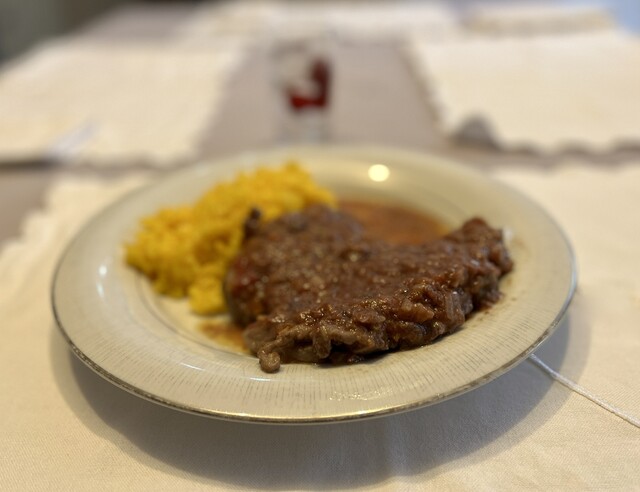 今回、娘の作ったオッソブーコは、ニンニクの香りが強く、塩味もマッチョでスポーツが好きなカッコマン(婿)向きでとてもおいしかったです。
