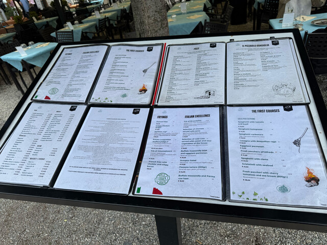 コモ湖のケーブルカー乗り場の横のお店.コモ・ラゴ駅から並ぶレストランの一つです.先にスパークリングワインが運ばれてきましたが,コペルトと呼ばれる席料代わりのようなもので,日本で言うところの付き出しみた...