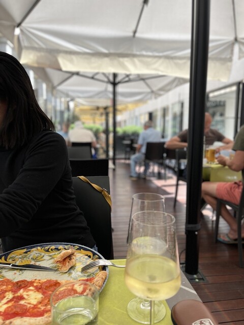 Via Sant'Orsola 左に小さく見えるテラス席に座る