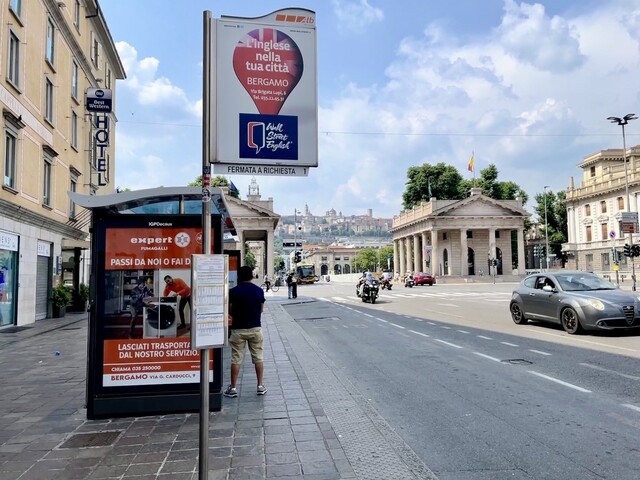 出発予定時刻一時間前に「この列車はキャンセルになりました。」との構内アナウンス。『まただよ。こーだよ。』と思いながらも素早い行動が成否を分けます。急いで切符販売所へ行き、事情を確認すると「多分、今日はどのミラノ行きの列車も運休になるでしょう。ミラノへ行くのであれば、ここからオーリオ・アル・セーリオ空港までバスかタクシーで移動して、ミラノ行きのリムジンバスに乗ってください。ベルガモからミラノまでの代金は、あなたのカード口座に Refund します。その先のことはミラノ中央駅の駅員に相談してください。電子切符のQRコードとパスポートをお示しください。」とのこと。私の手続きが終わると後ろには三十人ぐらいの行列ができていました。処理する窓口は二つしかありません。