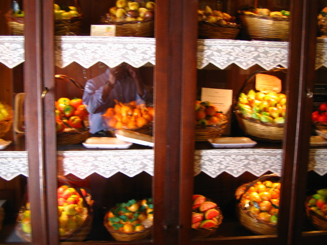 さて、エリチェにあるこのお菓子屋さんの名物は、アーモンドと砂糖を練り合わせたマジパン(独:マルチパンMarzipan、伊:マルツァパーネmarzapane)です。シチリアでは空港のBARでも土産物屋でもあらゆるところで販売されていて赤や緑、黄色に着色され果物や野菜の形になっています。元々は素材が手に入りやすかったイスラムの国で作られていたのですが、イスラム文化の伝播と共にヨーロッパに広がりました。