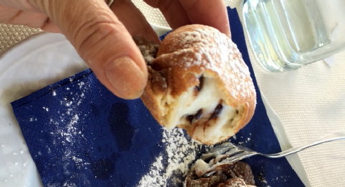 お菓子が、シチリアでは有名ですが、当店のは、揚げてあるドーナツタイプ
