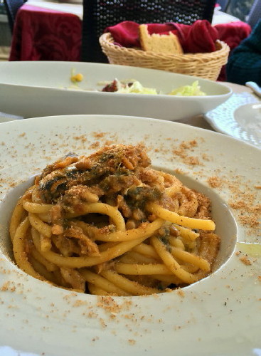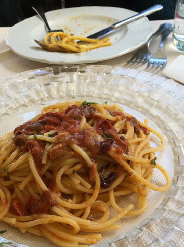 とても新鮮。こんなふうに太目のパスタに合わせるのが定番みたいです