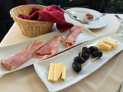 「オリーブとチーズとプロシュートの前菜を下さい」