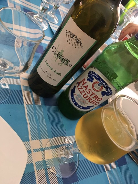 ドリンクはBIRRA(ビッラ)、ペローニ社のNastro Azzurro(ナストロアズーロ)大瓶で、頼んだ人かんぱ~い♪