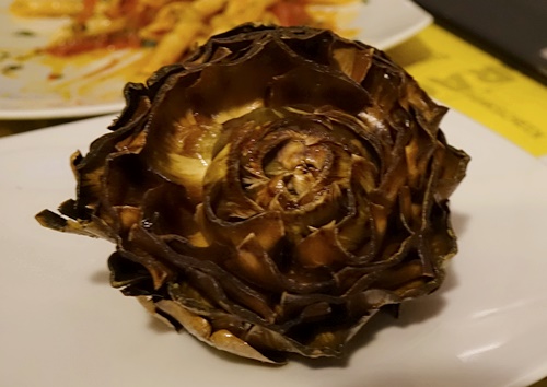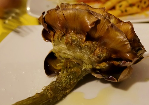 こちらは花弁ごと揚げてある「ジュディア風アーティチョーク(CarciofoallaGiudia)」