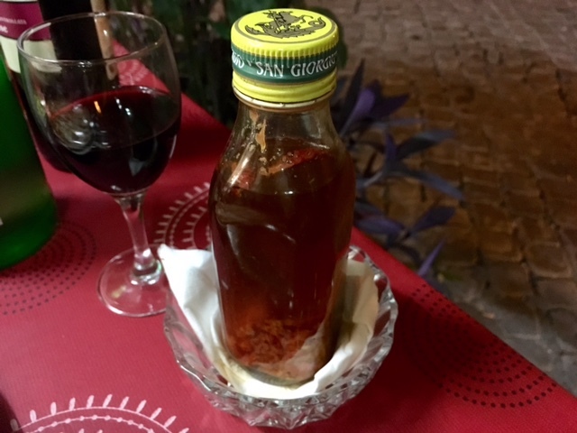 自家製のピリ辛オリーブオイルを持ってきてくれました。
