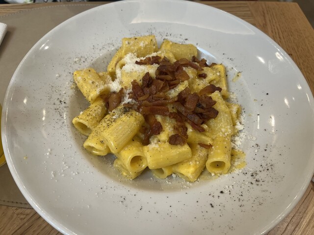 コロッセオ見学の帰りのランチを探している中で立ち寄りました。カルボナーラとシーフードパスタを注文。味は可もなく不可もなくという感想で、イタリア本場のパスタという期待値が先行していた分、特別感動するもの...