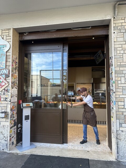 定番的人気はポテト+モッツァレッラやマルゲリータ。またフリットも名物のよう。小麦は石臼挽き粉を基調に、高加水・低温長時間発酵で気泡と伸びのあるクラムを形成。独自の生産者コレクティブ“Brigata Agricola”から届く約20の小規模生産者の作物を主軸に、化学処理に頼らない野菜、トレーサブルなチーズ・サルーミを選択。価格は量り売りで、具材次第でおおむね30.5〜40ユーロ/kg超のレンジ。