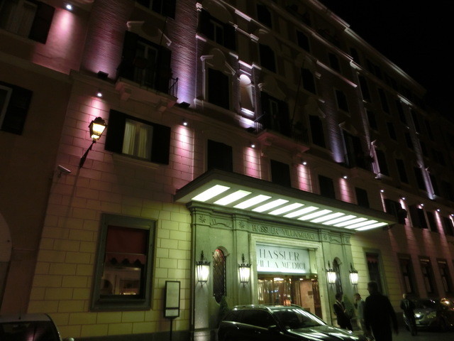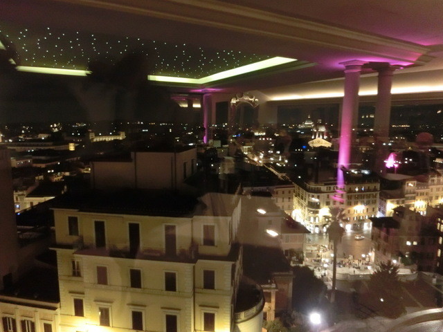 「ローマの休日」で有名なスペイン広場の階段を登ったハスラーホテルの最上階にこのレストランはある。私はこの日ローマから日帰りでボローニャ空港まで行きそこからマラネロまで某メーカーの赤い車の工場見学に行っていた。この日、NYUの友人たちとギリギリの時間に現地集合で待ち合わせていた。ローマ空港からタクシーを飛ばして若干の遅刻はあったが無事待ち合わせ場所のホテルのロビーに到着。男3人でエレベーターに乗りレストランに向かった。