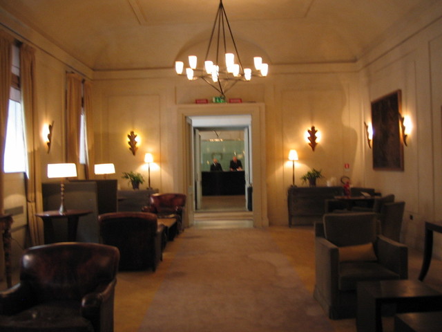 2009年、娘の友人(イタリア女性)の奨めで初めて利用しましたが、目立たない小さなエントランスを入ると左手にレセプションがあり、右手に天井の高いロビーがあります。