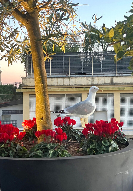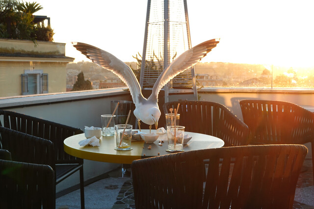 しん坊なカモメも!バチカンのクーポラが見える空に飛び去って行く...
