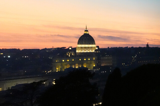 聖年のバチカンで聖なる門から聖堂に入れた日の夕方〜バチカンの左に