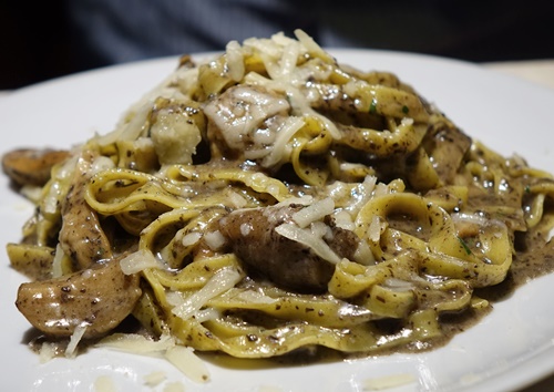 マッシュルームとトリュフがゴロゴロ入れられ、トリュフオイルで絡めたパスタ