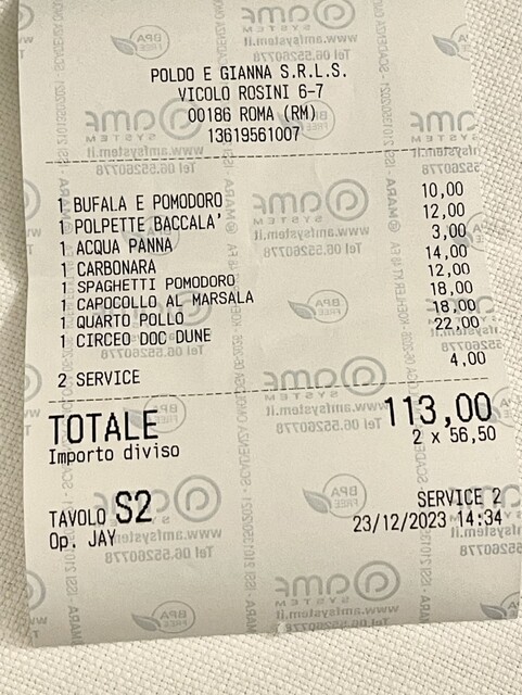 ただ、洗練されたからって美味しくなるということではなく、慣れ親しんだクラッシコなローマ料理がやはり口に合うんだなと実感しました。