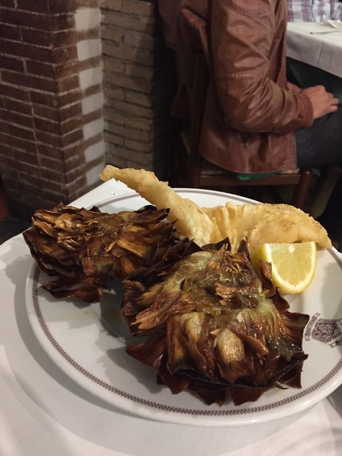 特にカルチョーフィのalla giudia(ユダヤ風)はオリーブオイルでこんがり揚げてあってとても美味しいですよ。