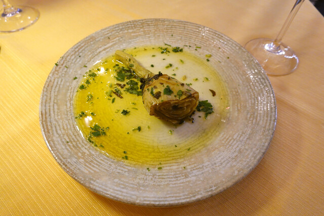 奥にありますが)ワインとカルチョーフォ・アラ・ロマーナ(€11)