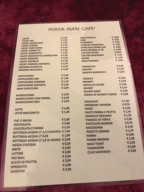 カリアーリに戻る前に、少し休憩しようと、ガンベロ・ロッソ掲載のバルは特になかったので、たまたま見つけた雰囲気の良さげなここのお店でお茶をすることにしました。