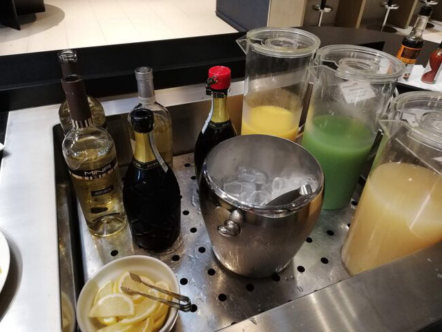 プライオリティパスを使い、ラウンジでシャワーを浴びてから軽めのに食事をとり、スプマンテで〆た。