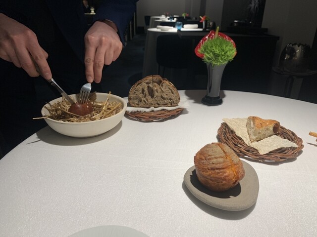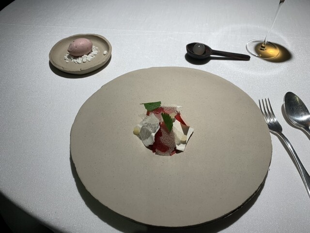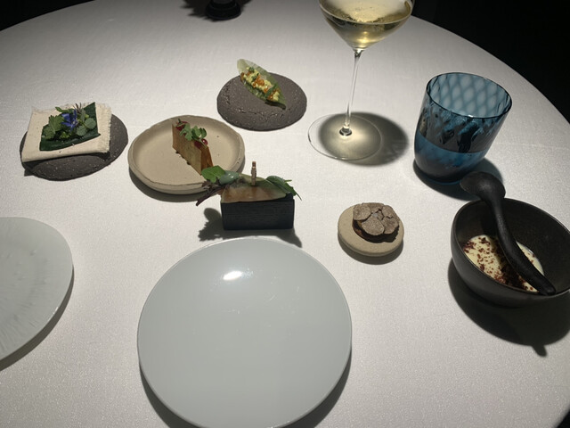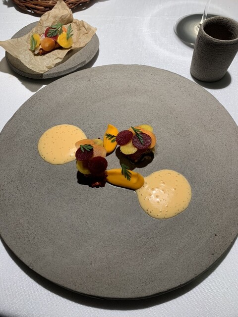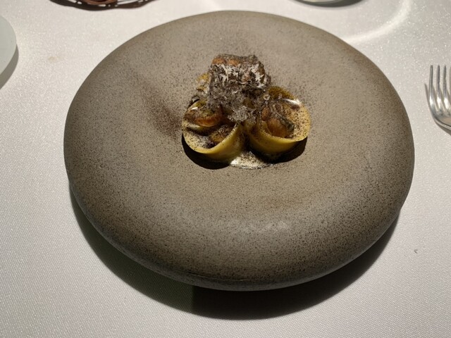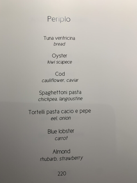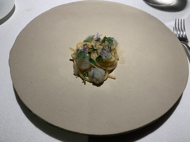 ポポロ広場近く、バチカン対岸の2つ星。ホテル内にあります。テイスティングメニュー2択、店名通りオールフィッシュメニューをチョイス、雰囲気、ソムリエサービスは抜群にいいけどお料理は極めてフツー、ピリ辛明太子をパンにつけて食べるのがシェフズスペシャルのようでこれが印象的なくらい、ワインペアリングは国内の特徴ある白が次々に出てくるのはいいです。