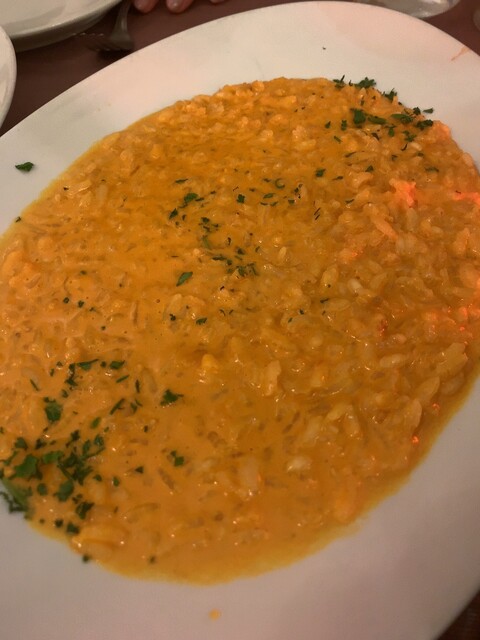 手長海老のクリームリゾット。ネットなどで見ていて最初から頼もうと思っていた一皿。