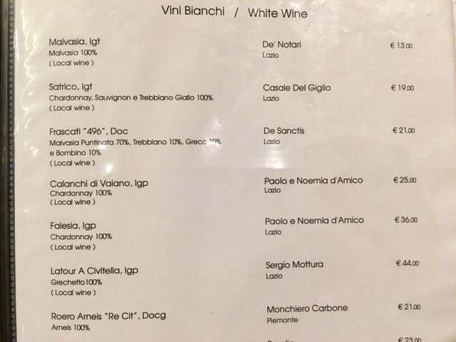 赤白ワインボトルは(13.0~44.0€)とリーズナブル。