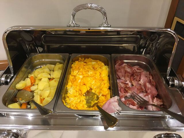 スクランブルエッグ、ベーコン、ナスの炒め物、など10種類ぐらいの