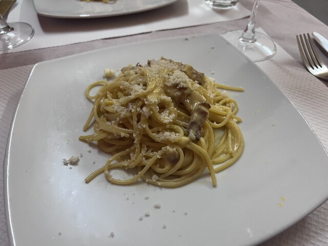「Sapori di Roma」は、ローマの素朴で温かな空気を感じられる trattoria らしい一軒で、観光地の中心にありながらも地元のお客さんにも愛されているような落ち着いた雰囲気が魅力的でした。今回いただいたのは、カルボナーラ、Polpette al sugo con patate(ミートボールのトマトソース煮・ポテト添え)、そして赤ワイン。どれもクラシックなローマ料理でありながら、丁寧に...