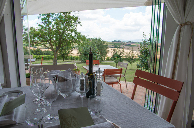 眺めの良いテラスでトスカーナの風を受けていただく食事は格別でした。