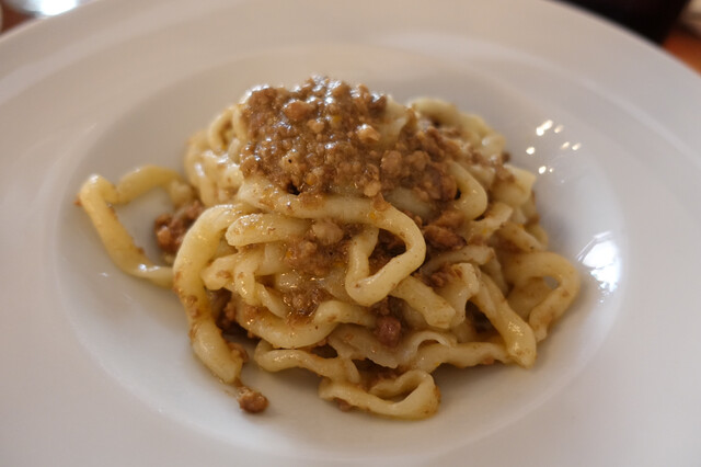注文の前にパッパポモドーロが。これが美味しい!こういう素朴な伝統料理がきちんと丁寧につくられているお店は絶対に間違いがない。