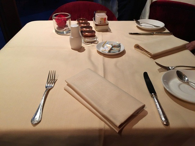 冬の寒さだったので、テラス側のテーブル席をキープ