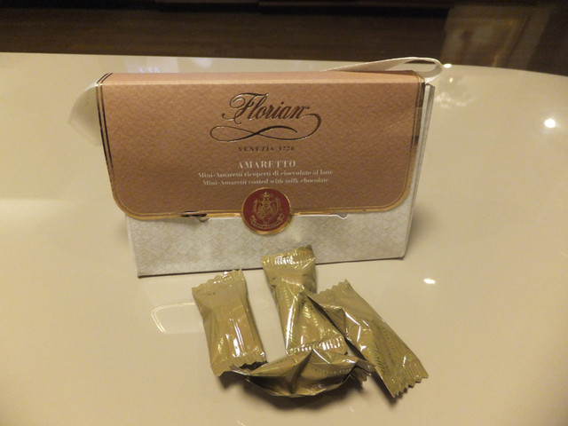 1720年創業。店内は黄金色のきらびやかな装飾で飾られています。通りの観光客は店内を眺めて歩きます。エスプレッソ6.5€、カプチーノ12€、少しアルコールの入ったアニバーサリーコーヒー12.5€を注文しました。値段は高いけれど、味とこの雰囲気は素晴らしいです。Facebookで繋がりのあるアンナ・リータさんはここで働いています。ご挨拶して一緒に写真を撮り、フローリアン特製のチョコレート菓子まで頂きました。フローリアンで働けることを誇りに思っているそうです。