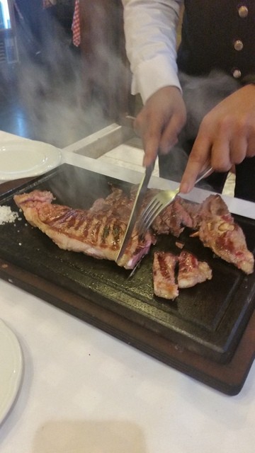 ビステッカ(600g)、ピッツァ、カルボナーラ、イカスミパスタ、ビールやワインなどを注文...