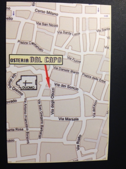 駅に近いこの礼拝堂から街の中心地へ歩いて行くとOsteria dal Capoがあります。