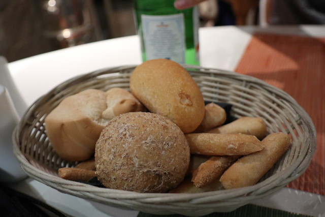 何とか店員さんを呼び止めて、オリキエティ(パスタ)とシーバス(すずき)のグリル、焼き野菜、それに、いつも通り、お水を頼みました。