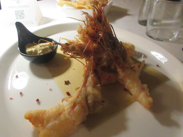 を選びました。車海老のフリットにマスタードとヨーグルトのデイップがついています。