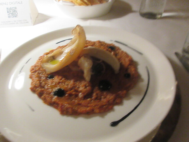 メニュー名はローストしたイカですが、トマトと玉ねぎを煮詰めたものが