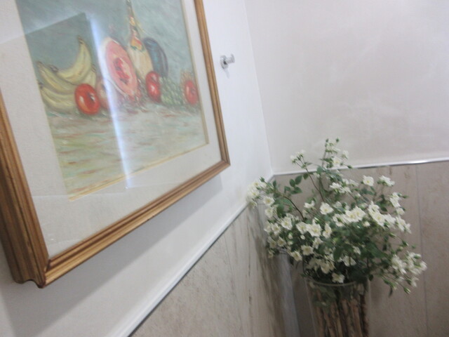 トイレの前の部屋の絵、ちょっとレベル低すぎでびっくりです。家にある油絵の方全く次元違いです