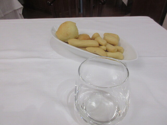 名称は知りませんが、グリッシーニの太くて短いものとパンがいただけます。