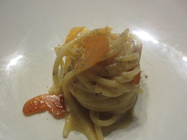 パスタはやはり硬い感じです。全体的な味はカラスミの味+チーズ+オリーブオイル
