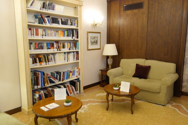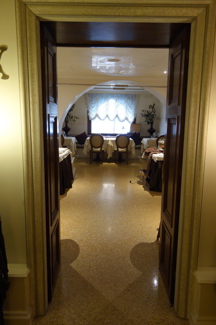 ホテルのロビーを抜けた先 雰囲気有る落ち着いた部屋 窓からは、運河を走るゴンドラを操る船頭さんがひっきりなしで見える 部屋は、2部屋 各10席ほど