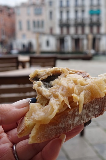 なんとまぁ~美味しいクロスティーニ!イワシのマリネがパンの上にどっさり乗っています