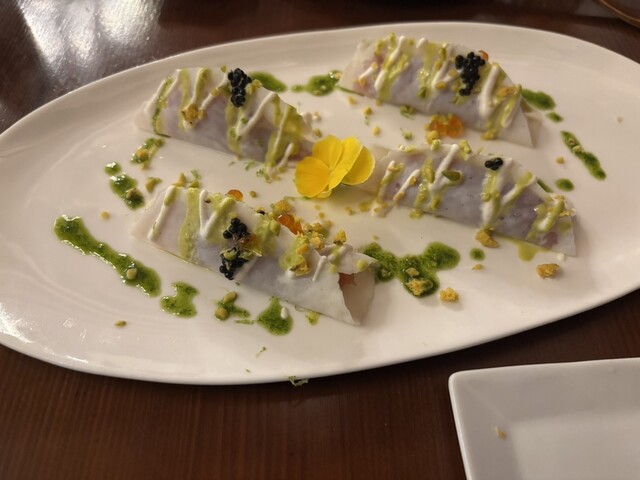 前菜のグリーンピースの冷製スープから始まりどれもおいしかったですが、円安すぎてランチで2,3000円程度のお食事でした。。。