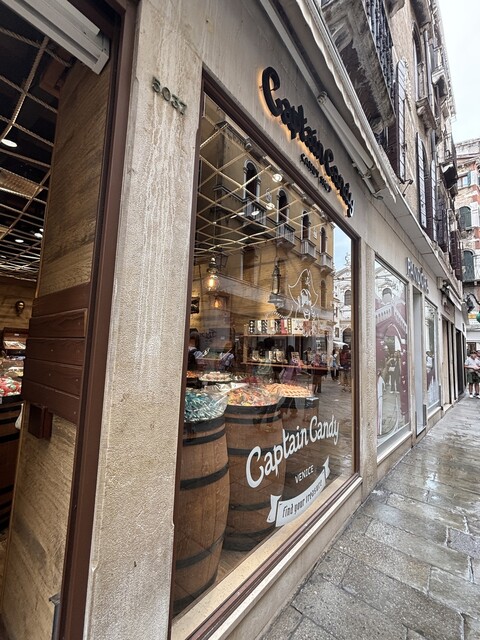 リアルト橋近く。いろんなお店がありますが、ヴェネツィアぽくないお店を発見。かわいらしいので入ってみました。すると、試食を勧められ、試食をすると、やはり購入という流れです。多くの種類があって面白かったですよ。
