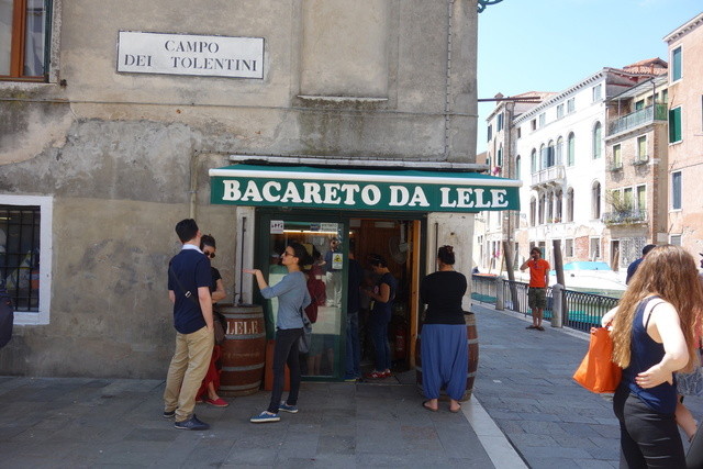 パニーニ と ワイン を店頭で売っていて、店の周りで皆な喰ってる