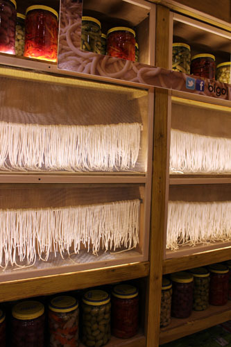 店内は小さいながらもパスタなどがかわいくディスプレイされていてお洒落です。