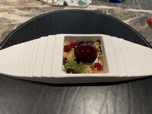 甘み、酸味、辛味、苦みと複雑な味わいのデザートとなっており、発想は面白いが自分にはあまり合わなかった。