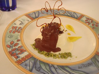 中にモスタルダ(フルーツの辛し漬け)が詰め物で入っているずら。