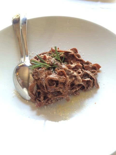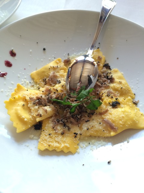 クラテッロ(16ヶ月・26ヶ月・36ヶ月と熟成期間の違うものを食べ比べ)からスタート。熟成期間が長くなると味が濃くなると共に臭みが強くなっているのが良くわかります。どれが好きかは好みの問題でしょう。パッパルデッレ・タリアテッレ・ラビオリ・リゾットと四種パスタは、味付け・茹で加減ともに見事だと思います。超シンプルなサラダ(ルッコラ・トマト・人参、、、やたらと落ち着くw)・イタリア野菜のグリル(ナス・ズッキーニ・トレヴィス・トマト)で一息つくと、ここまでレビューしていないお店でもたらふく食べてまいりましたので、肉は少なめに抑えました。締めにデザート4種。意外であったのはこのデザート。なかなか色鮮やかで凝ったものが出てきました。もう満腹!!と思ったらアメリカーノ(イタリアでは普通のコーヒーをアメリカーノと呼びます)と一緒に出てきた小菓子が、とても「小」とは思えない・・・。一応味見をして食べ終わると、またもやもう一皿の小菓子が!!もう無理。イタリア人のホスピタリティに驚き、感謝しました (。-人-。)