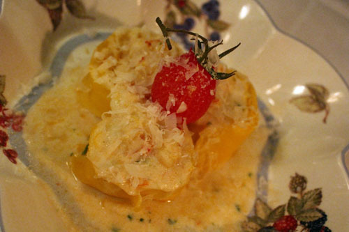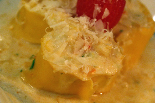 手長海老と普通の(?)海老を詰めたラビオリみたいなパスタだね。
